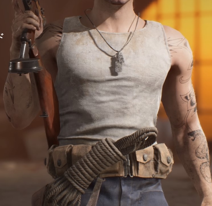 所属が気になる。陸軍でヨーロッパ戦線に行った後、海兵隊に入隊でもしたのだろうか。おもっくそ破けて肩が出た服の上からt64armorを装着している。