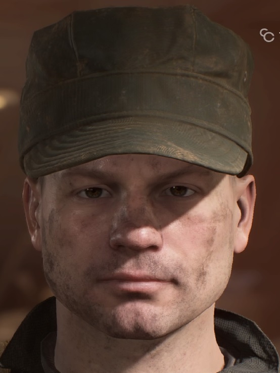 ずっとコンセプトアート内に幽閉され続けていた男。相方の青サンタにはトレーラーがあるがこいつは作ってもらってない…モヒカン×渦巻きフェイスペイントと101空挺師団の兵士らしい出立ち。トップ分隊画面のナイフで頭を剃り出すのはヒヤヒヤさせられる。純朴な農家の青年だったのだが、すっかり「ヤンキー」に染まってしまった。