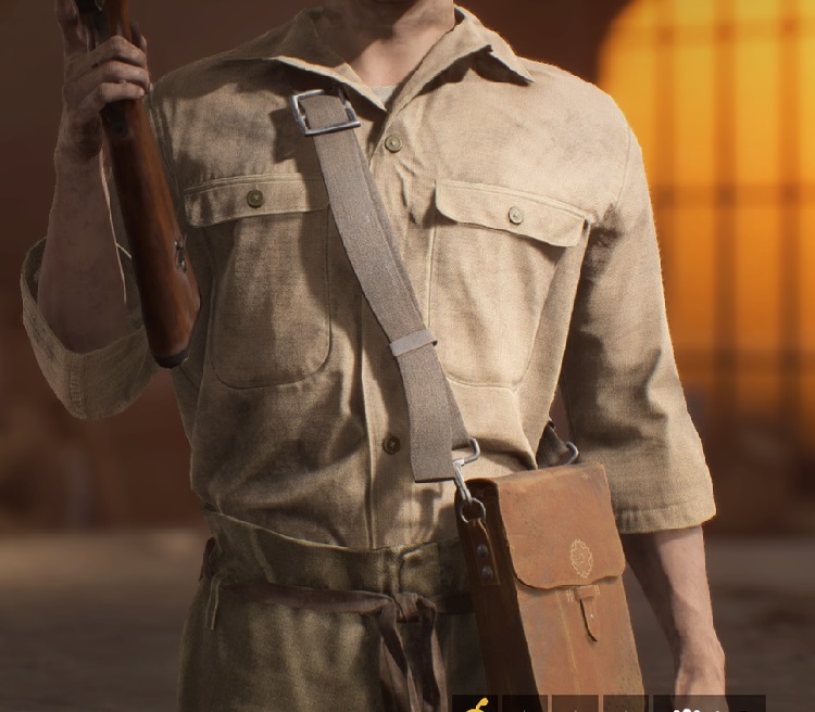日本陸軍の士官であろう。刀二本差し、制帽にマントと日本人も外国人もニッコリな外見をしている。胸部を覆うプレートは「92式防弾具」、だがゲーム内ではこんなのみたいな効果は何もない。