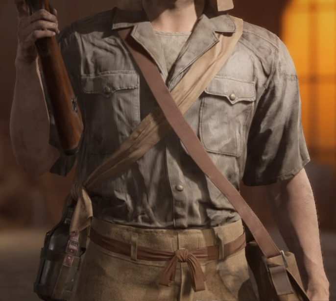 日本陸軍の士官であろう。刀二本差し、制帽にマントと日本人も外国人もニッコリな外見をしている。胸部を覆うプレートは「92式防弾具」、だがゲーム内ではこんなの